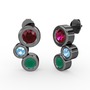 Kök zümrüt, rodolit garnet ve akuamarin 925 ayar siyah rodyum kaplama gümüş küpe