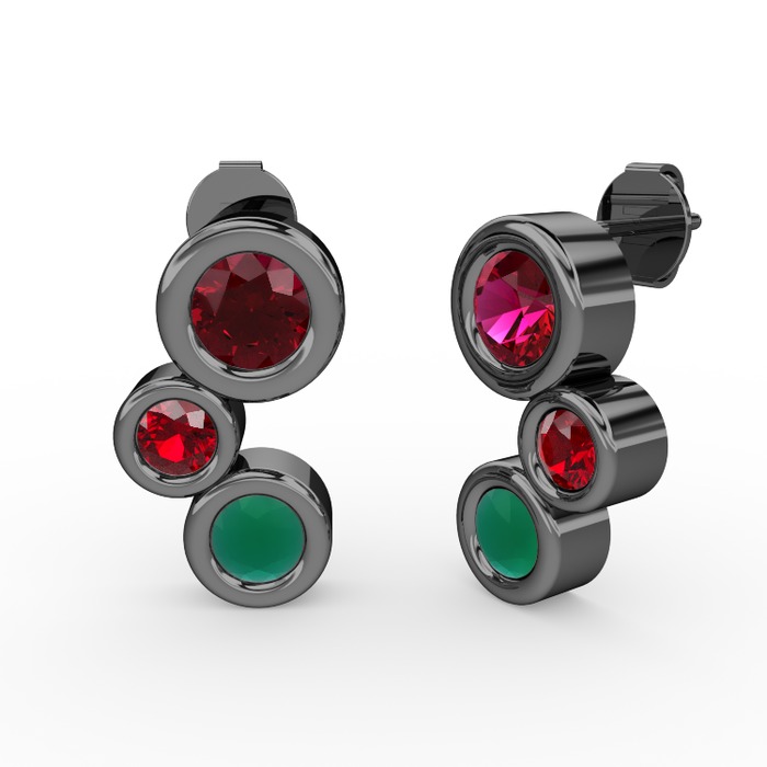 Kök zümrüt, rodolit garnet ve garnet 925 ayar siyah rodyum kaplama gümüş küpe