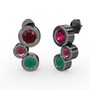 Kök zümrüt, rodolit garnet ve kök yakut 925 ayar siyah rodyum kaplama gümüş küpe