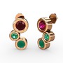 Kök zümrüt, rodolit garnet ve yeşil kuvars 18 ayar rose altın küpe