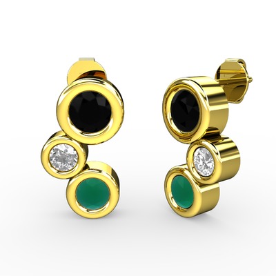 Kök zümrüt, siyah zirkon ve beyaz zirkon 925 ayar altın kaplama gümüş küpe