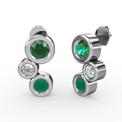 Kök zümrüt, yeşil kuvars ve swarovski 8 ayar beyaz altın küpe