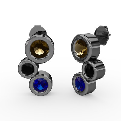 Lab safir, dumanlı kuvars ve siyah zirkon 925 ayar siyah rodyum kaplama gümüş küpe