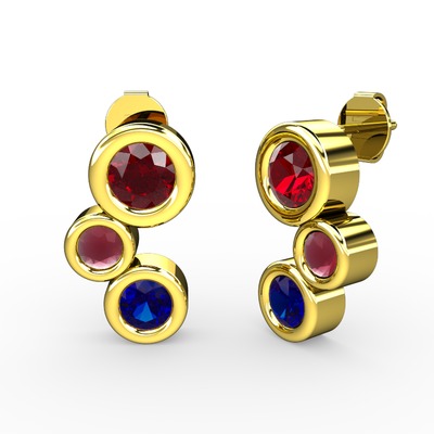 Lab safir, garnet ve kök yakut 18 ayar altın küpe