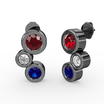 Lab safir, garnet ve pırlanta 925 ayar siyah rodyum kaplama gümüş küpe (0.48 karat)