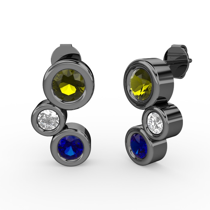 Lab safir, peridot ve swarovski 925 ayar siyah rodyum kaplama gümüş küpe