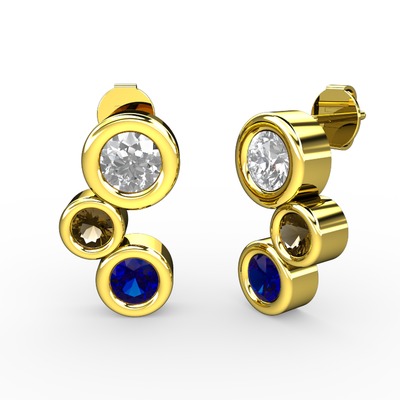 Lab safir, pırlanta ve dumanlı kuvars 8 ayar altın küpe (1.84 karat)
