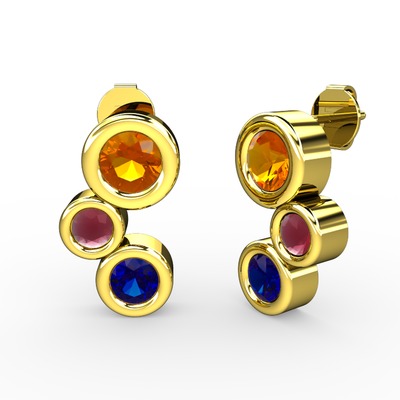 Lab safir, sitrin ve kök yakut 8 ayar altın küpe