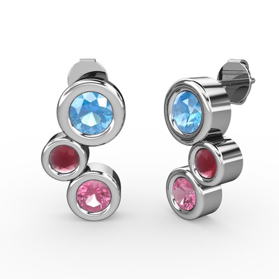Pembe kuvars, akuamarin ve kök yakut 8 ayar beyaz altın küpe