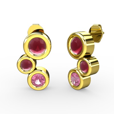 Pembe kuvars ve kök yakut 18 ayar altın küpe