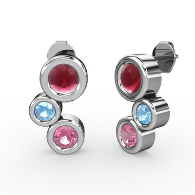 Pembe kuvars, kök yakut ve akuamarin 925 ayar gümüş küpe