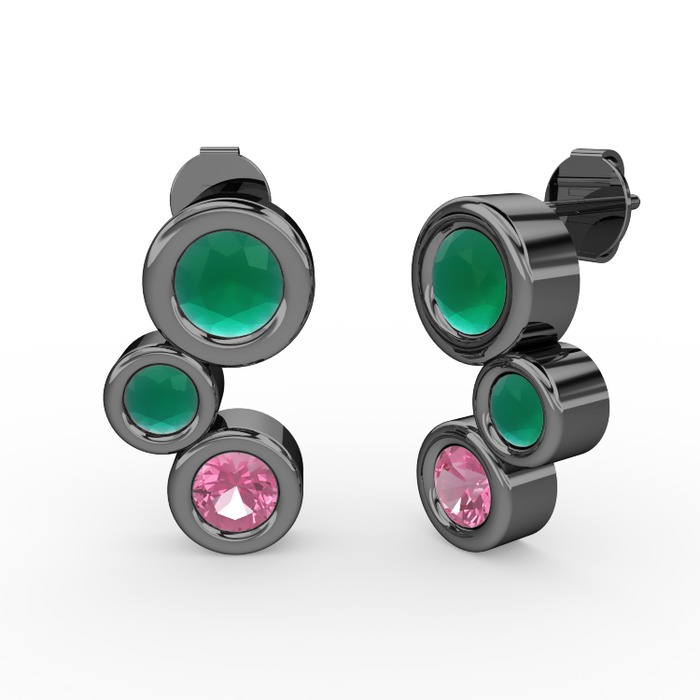 Pembe kuvars ve kök zümrüt 925 ayar siyah rodyum kaplama gümüş küpe
