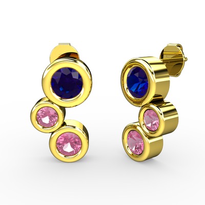 Pembe kuvars ve lab safir 18 ayar altın küpe