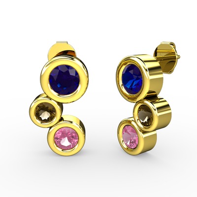 Pembe kuvars, lab safir ve dumanlı kuvars 925 ayar altın kaplama gümüş küpe