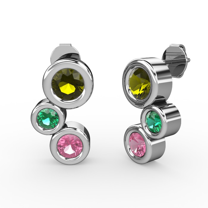 Pembe kuvars, peridot ve yeşil kuvars 8 ayar beyaz altın küpe