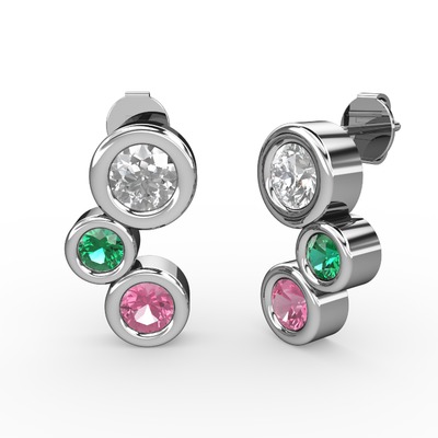 Pembe kuvars, pırlanta ve yeşil kuvars 8 ayar beyaz altın küpe (1.84 karat)