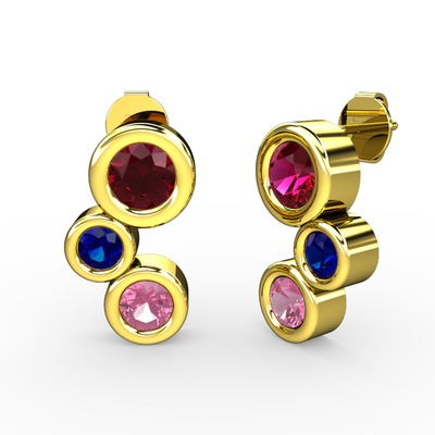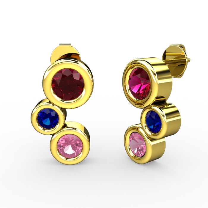 Pembe kuvars, rodolit garnet ve lab safir 8 ayar altın küpe