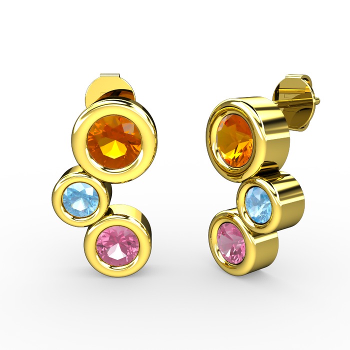 Pembe kuvars, sitrin ve akuamarin 14 ayar altın küpe