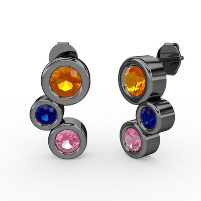 Pembe kuvars, sitrin ve lab safir 925 ayar siyah rodyum kaplama gümüş küpe