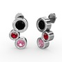 Pembe kuvars, siyah zirkon ve garnet 8 ayar beyaz altın küpe