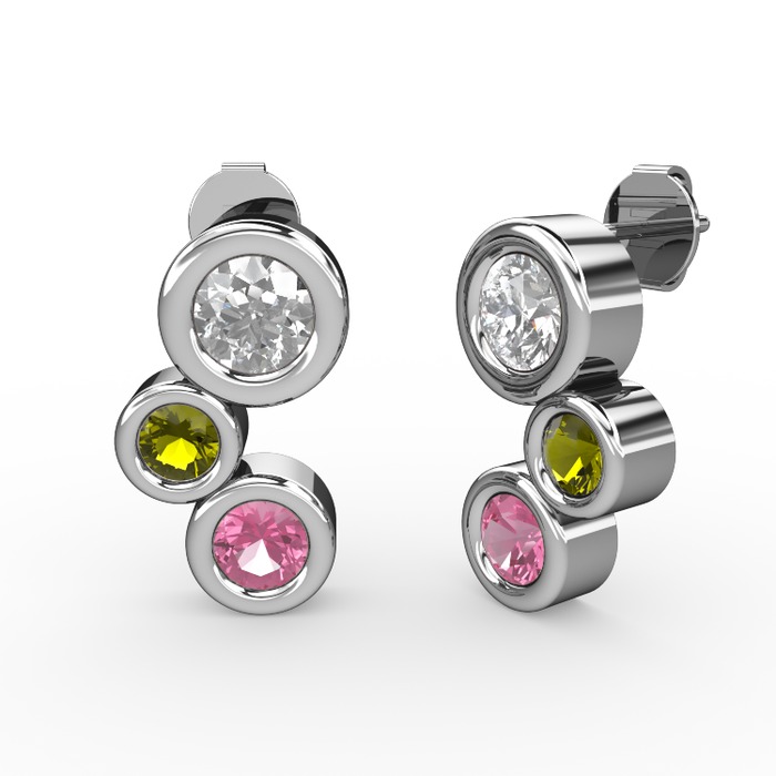 Pembe kuvars, swarovski ve peridot 8 ayar beyaz altın küpe