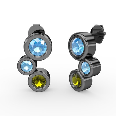Vinda Küpe - Peridot ve akuamarin 925 ayar siyah rodyum kaplama gümüş küpe