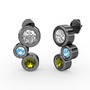 Peridot, beyaz zirkon ve akuamarin 925 ayar siyah rodyum kaplama gümüş küpe