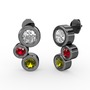Peridot, beyaz zirkon ve garnet 925 ayar siyah rodyum kaplama gümüş küpe