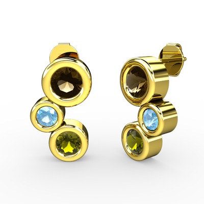 Peridot, dumanlı kuvars ve akuamarin 925 ayar altın kaplama gümüş küpe