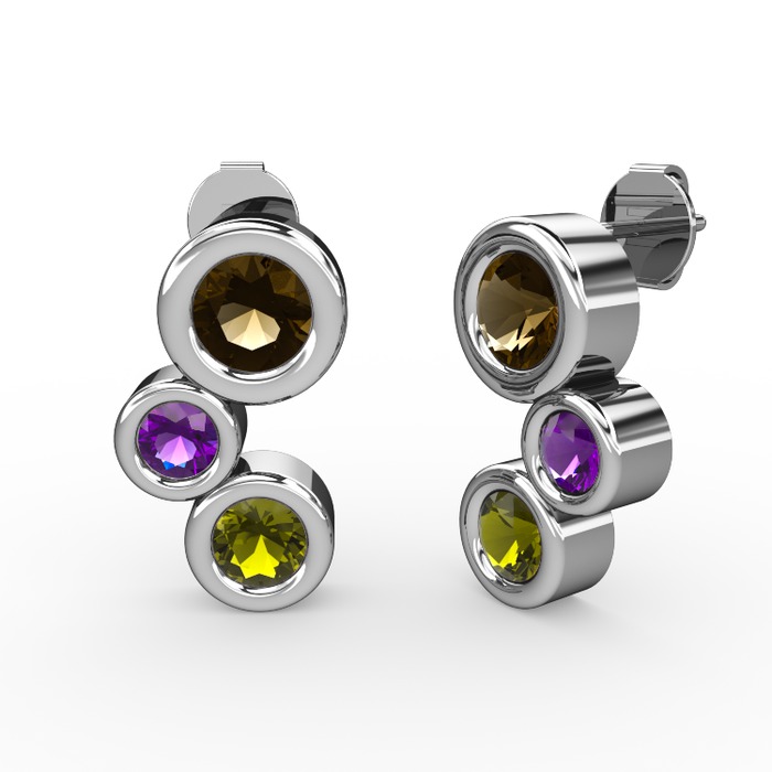 Peridot, dumanlı kuvars ve ametist 925 ayar gümüş küpe