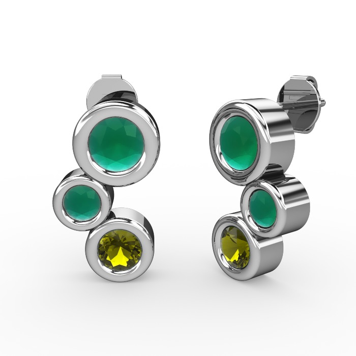 Peridot ve kök zümrüt 8 ayar beyaz altın küpe