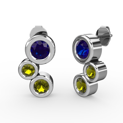 Peridot ve lab safir 14 ayar beyaz altın küpe