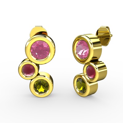 Peridot, pembe kuvars ve kök yakut 14 ayar altın küpe