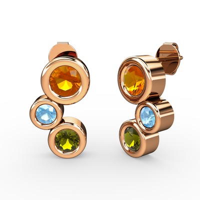 Peridot, sitrin ve akuamarin 14 ayar rose altın küpe