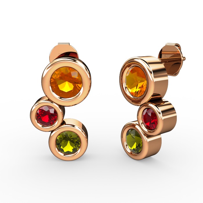 Peridot, sitrin ve garnet 18 ayar rose altın küpe