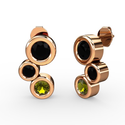 Peridot ve siyah zirkon 8 ayar rose altın küpe
