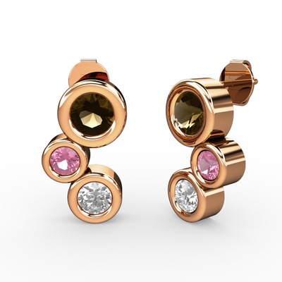 Pırlanta, dumanlı kuvars ve pembe kuvars 14 ayar rose altın küpe (1 karat)