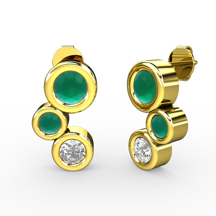 Pırlanta ve kök zümrüt 14 ayar altın küpe (1 karat)