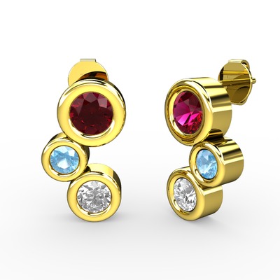 Pırlanta, rodolit garnet ve akuamarin 14 ayar altın küpe (1 karat)
