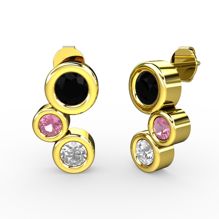 Pırlanta, siyah zirkon ve pembe kuvars 8 ayar altın küpe (1 karat)