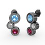 Rodolit garnet, akuamarin ve swarovski 925 ayar siyah rodyum kaplama gümüş küpe