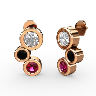 Rodolit garnet, beyaz zirkon ve siyah zirkon 8 ayar rose altın küpe