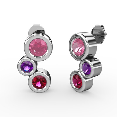 Rodolit garnet, pembe kuvars ve ametist 14 ayar beyaz altın küpe