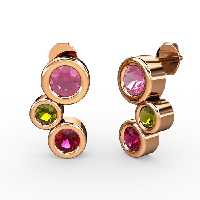Rodolit garnet, pembe kuvars ve peridot 925 ayar rose altın kaplama gümüş küpe