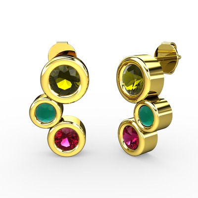 Rodolit garnet, peridot ve kök zümrüt 8 ayar altın küpe