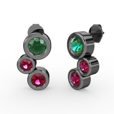 Rodolit garnet ve yeşil kuvars 925 ayar siyah rodyum kaplama gümüş küpe