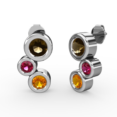 Sitrin, dumanlı kuvars ve rodolit garnet 18 ayar beyaz altın küpe