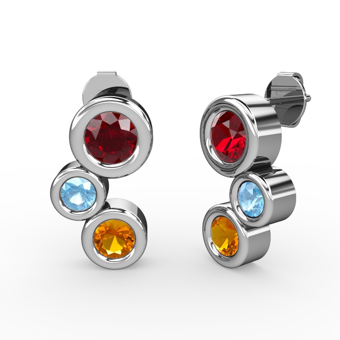 Sitrin, garnet ve akuamarin 18 ayar beyaz altın küpe