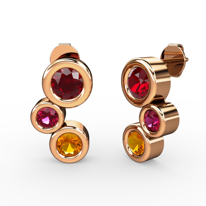 Sitrin, garnet ve rodolit garnet 18 ayar rose altın küpe