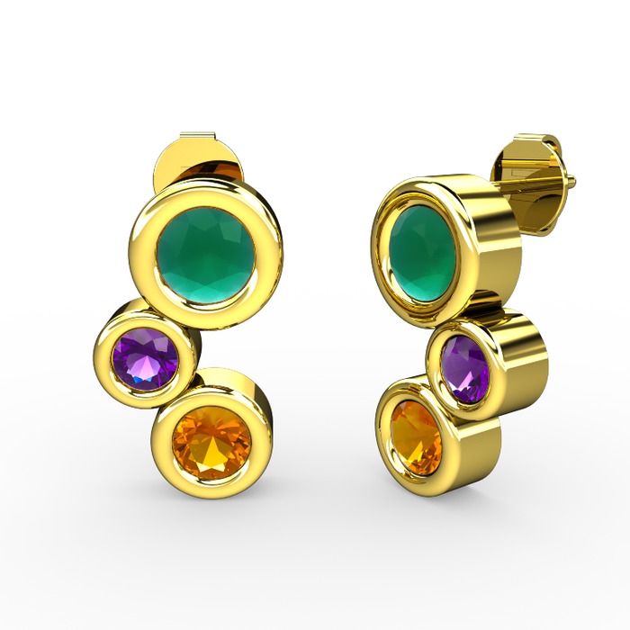Sitrin, kök zümrüt ve ametist 14 ayar altın küpe